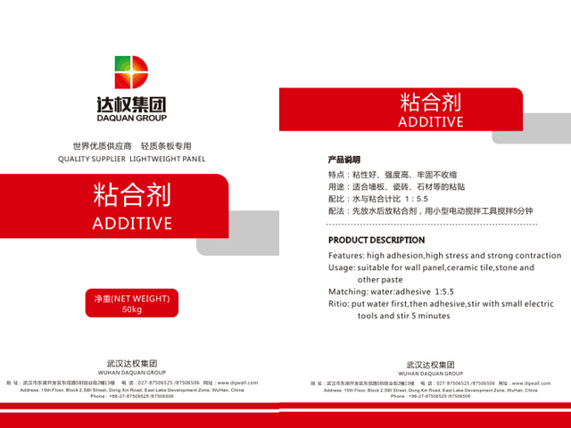 - 特點:本品為安裝墻板專用粘合劑,也可直接用作瓷磚、石材等的粘料;具有粘合力強、防裂、防空鼓,方便施工等優(yōu)點。